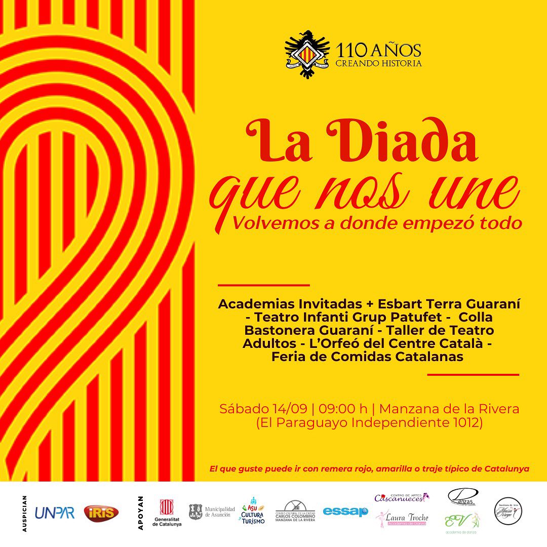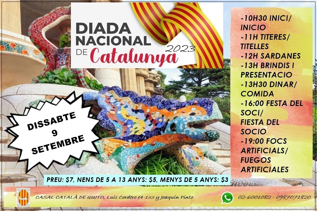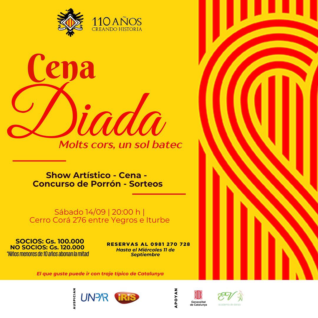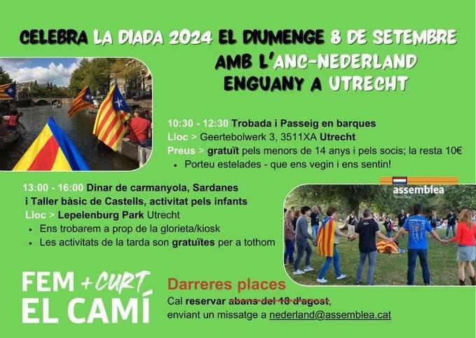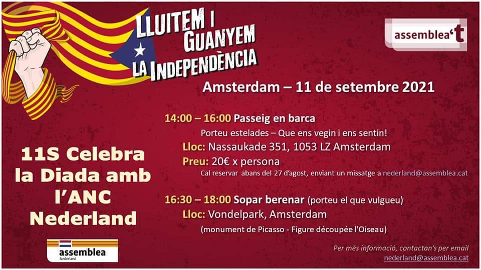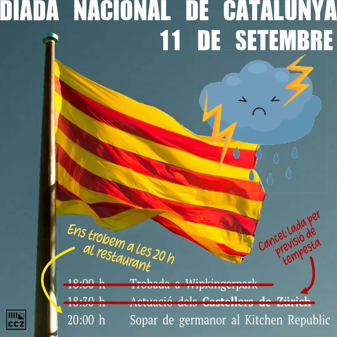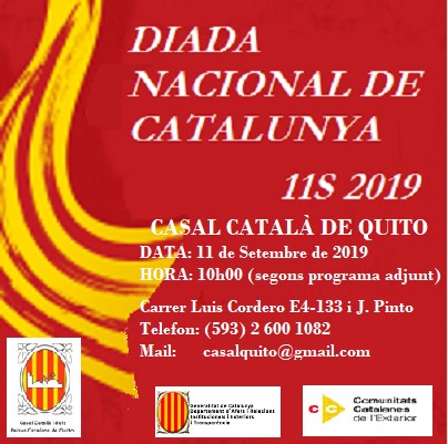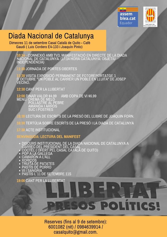 (un altre any l’ANC Xile us convoca a celebrar la Diada Nacional de Catalunya el proper dia 8 de setembre a les 11 AM. ÑAquest any no estem per festes de manera que us demanem venir de color fosc per tal que el que destaqui sigui el llaç groc que estendrem en acte de protesta per la situació dels presos polÃtics que segueixen a la presó. Us esperem.)