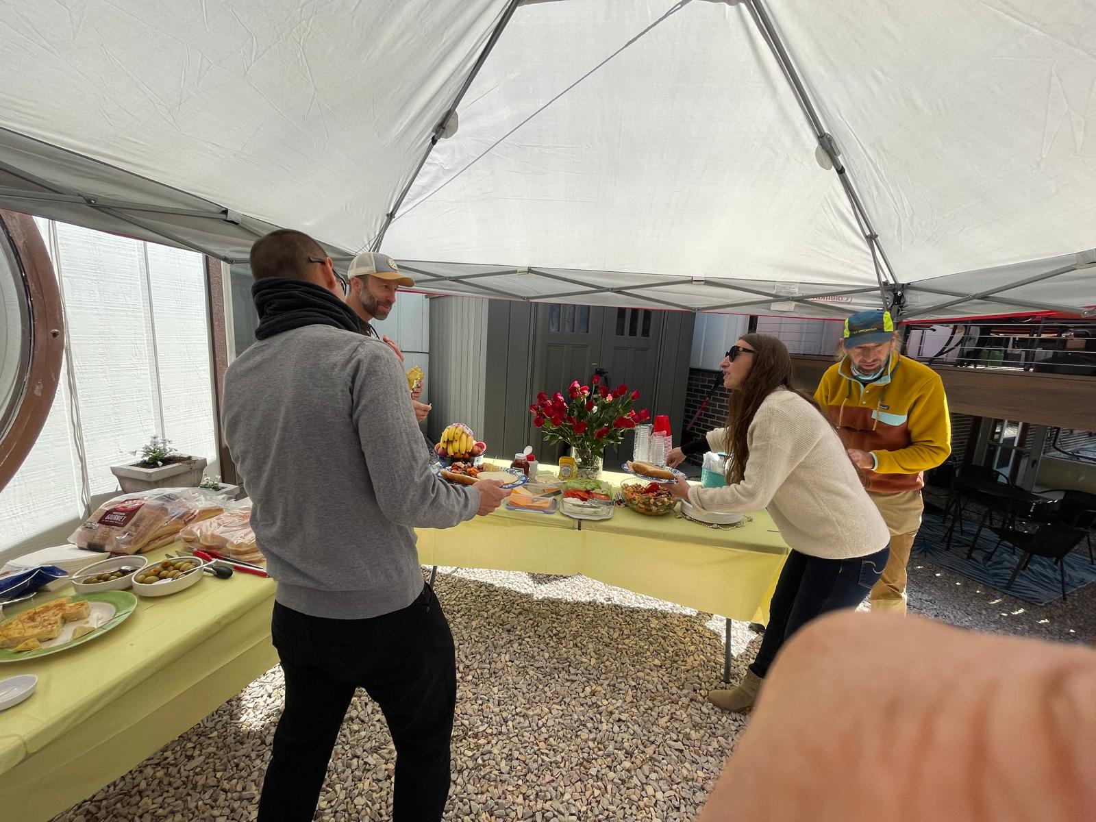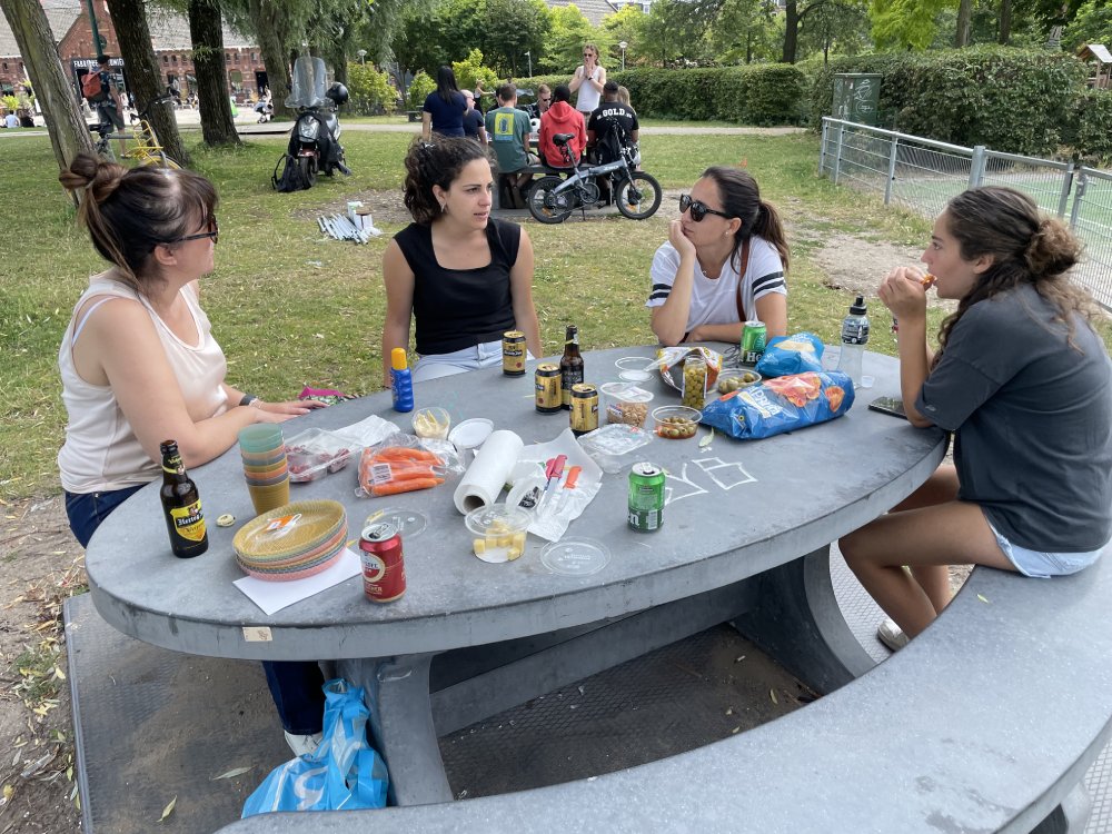 Estarem tots plegats a les 17.00, per a les 17.14 fer soroll i, tot seguit, esmorzarem totes/tots plegades / plegats amb menjar que portem de casa.)