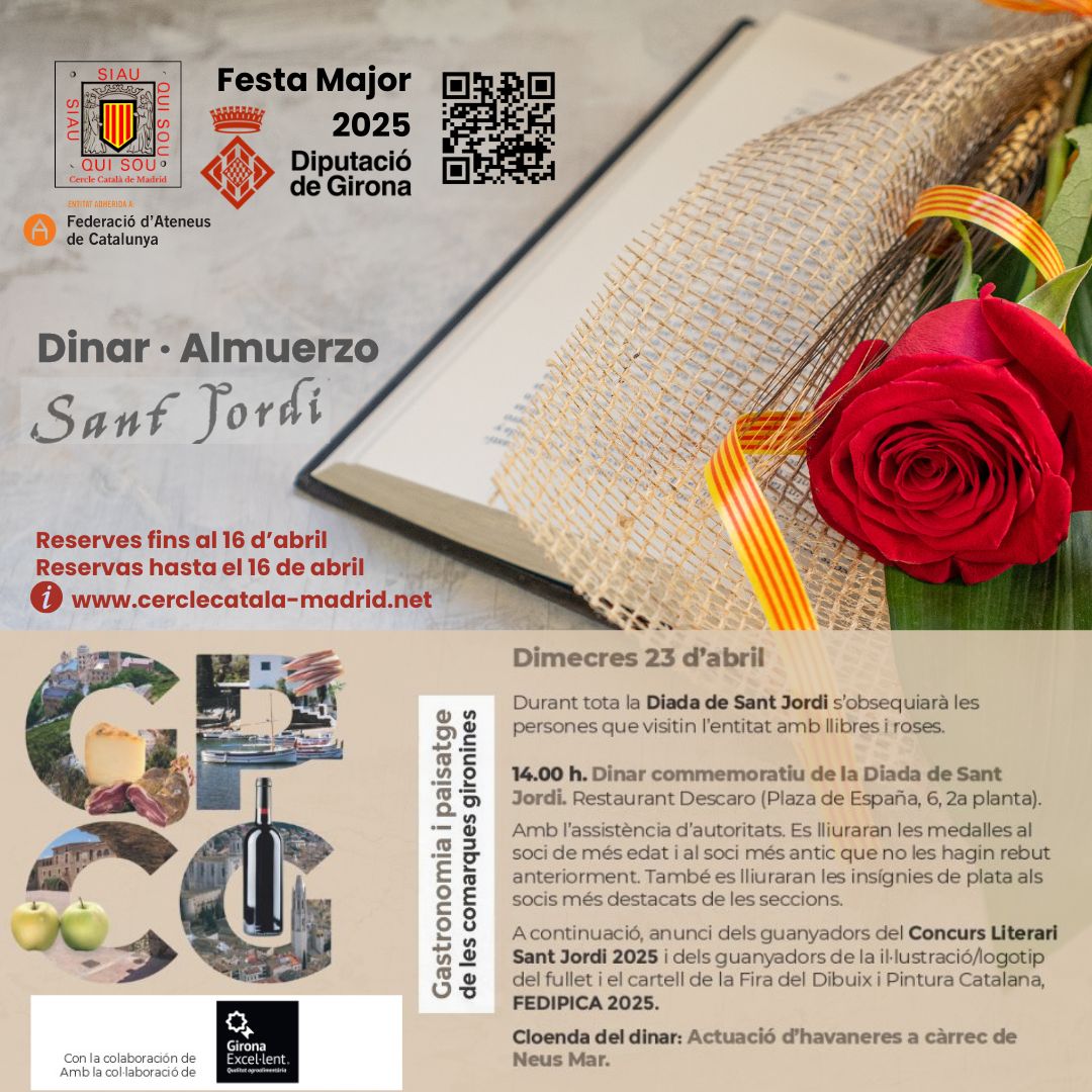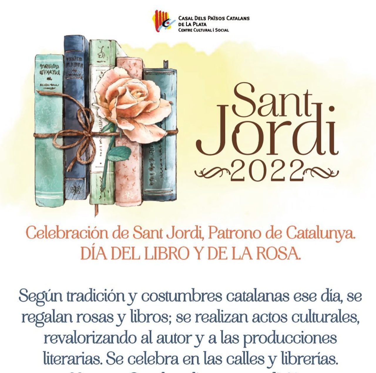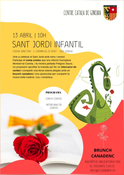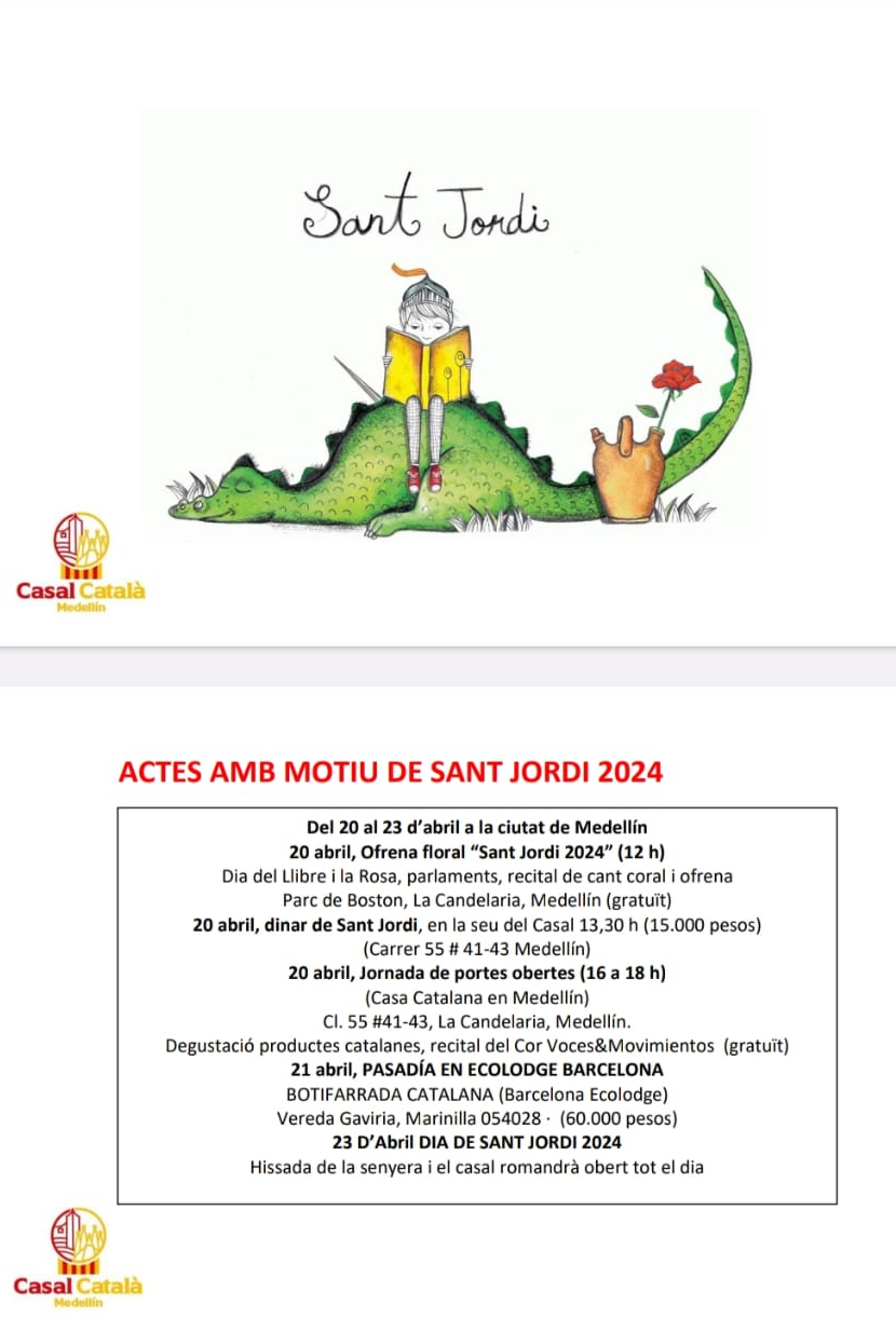 (Agafa la teva agenda i reserva la data per a una tarda plena de roses, llibres i més!\r\n\r\nQuan? Dissabte 25 d’abril de 2026\r\n\r\nMainada de 15:30 h – 17:30 h\r\n\r\nGrans de 18:00 h - 23:00 h\r\n\r\nOn? IG-Feuerwache (aprop de la Theresienwiese/U4-U5 parada Schwanthalerhöhe)\r\n\r\nPrograma d’activitats: Parada de llibres i parada de roses tota la tarda.\r\n\r\nTambé hi haurà una parada d'intercanvi de llibres.\r\n\r\nEscriu a info@casalmunic.de si vols encarregar un llibre. Farem una comanda conjunta i el diss. 25 d’abril el podràs recollir amb un descompte de 10% per socis\r\n\r\n15:30 h – Actuació i taller de màgia per a petits\r\n\r\n17:00 h – Berenar i begudes per a totes les edats a partir de les 17:00 h\r\n\r\n18:00 h – Joc de Sant Jordi 20:00 h – Música i ball amb el DJ Shak (profi) que animarà la festa amb música catalana i internacional.\r\n\r\nT’hi esperem!\r\n\r\nEl teu Centre Català de Munic e.V. - El Casal)
