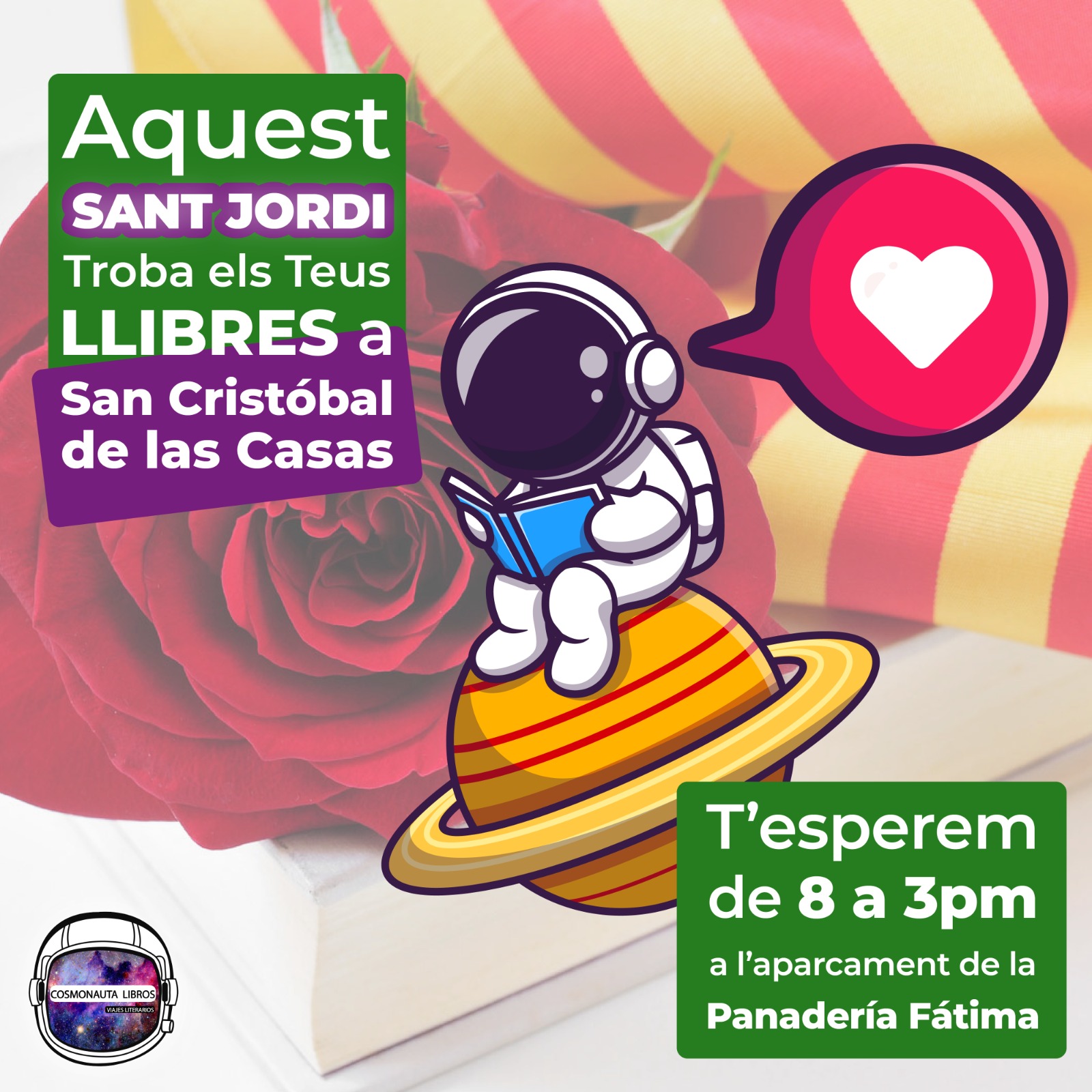 (Per Sant Jordi, 23/4/26. Fem una fest amb el Josep Maria Romero! Donem roses i punts de llibre a tots, i tambe regala especials.)