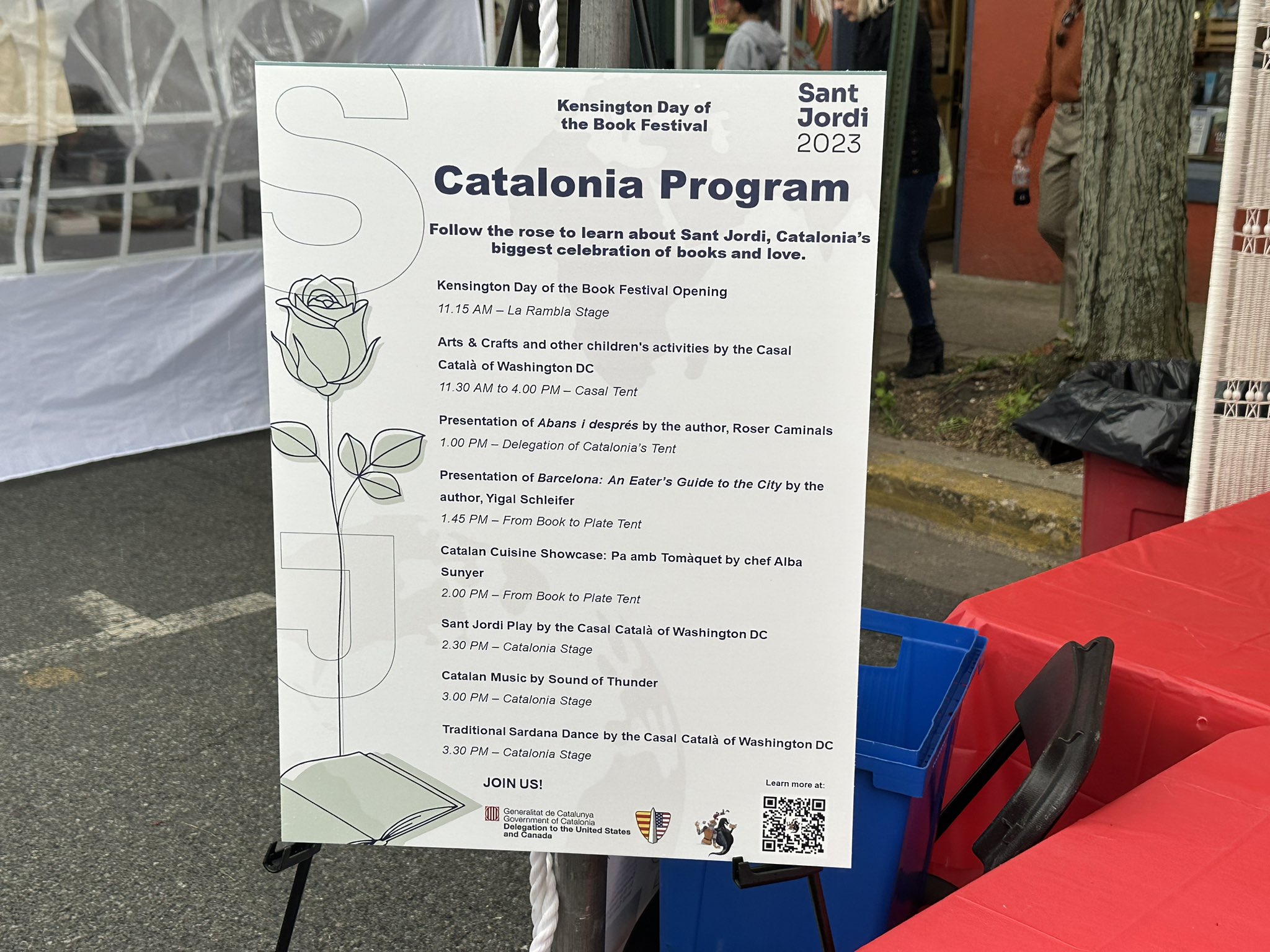(April 25:\r\n\r\n12:00 - 5:00 pm: STREET FAIR\r\nBooks, Roses, Music & Food\r\n\r\non Christopher St (between Greenwich Av & Waverly Pl)\r\nWith Kids' Activities, Live Music, Readings and more...\r\n\r\nThe festival will conclude with a signature outdoor book and flower fair on the iconic Christopher Street, providing a memorable finale to the cultural celebration.\r\n\r\nThe market will include:\r\n\r\n- Bookstands and flower stalls throughout the streets.\r\n\r\n- Kiosks featuring Catalan cuisine, publisher merchandise, and literary goods.\r\n\r\n- Children’s Activities hosted by the Catalan Institute of America.\r\n\r\n- Live readings and musical performances.)