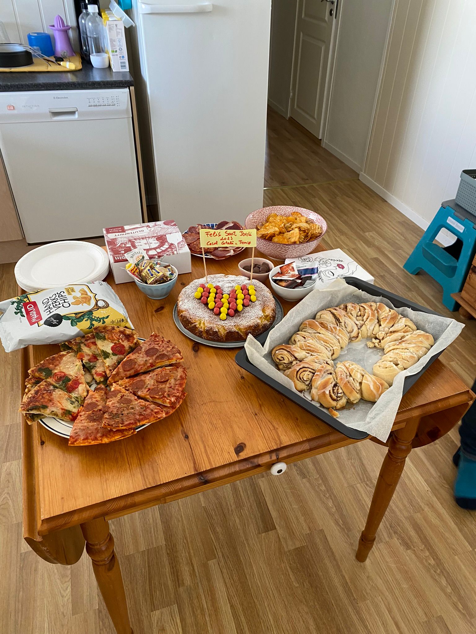 (Hi haurà truita, pa amb tomàquet, crema catalana, pernil, ensaimades,etc\r\nManualitats pels peques, i una petita quantitat de llibres de st jordi en català)