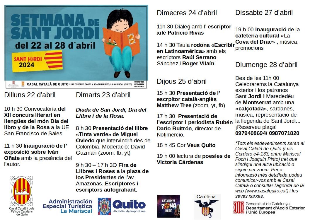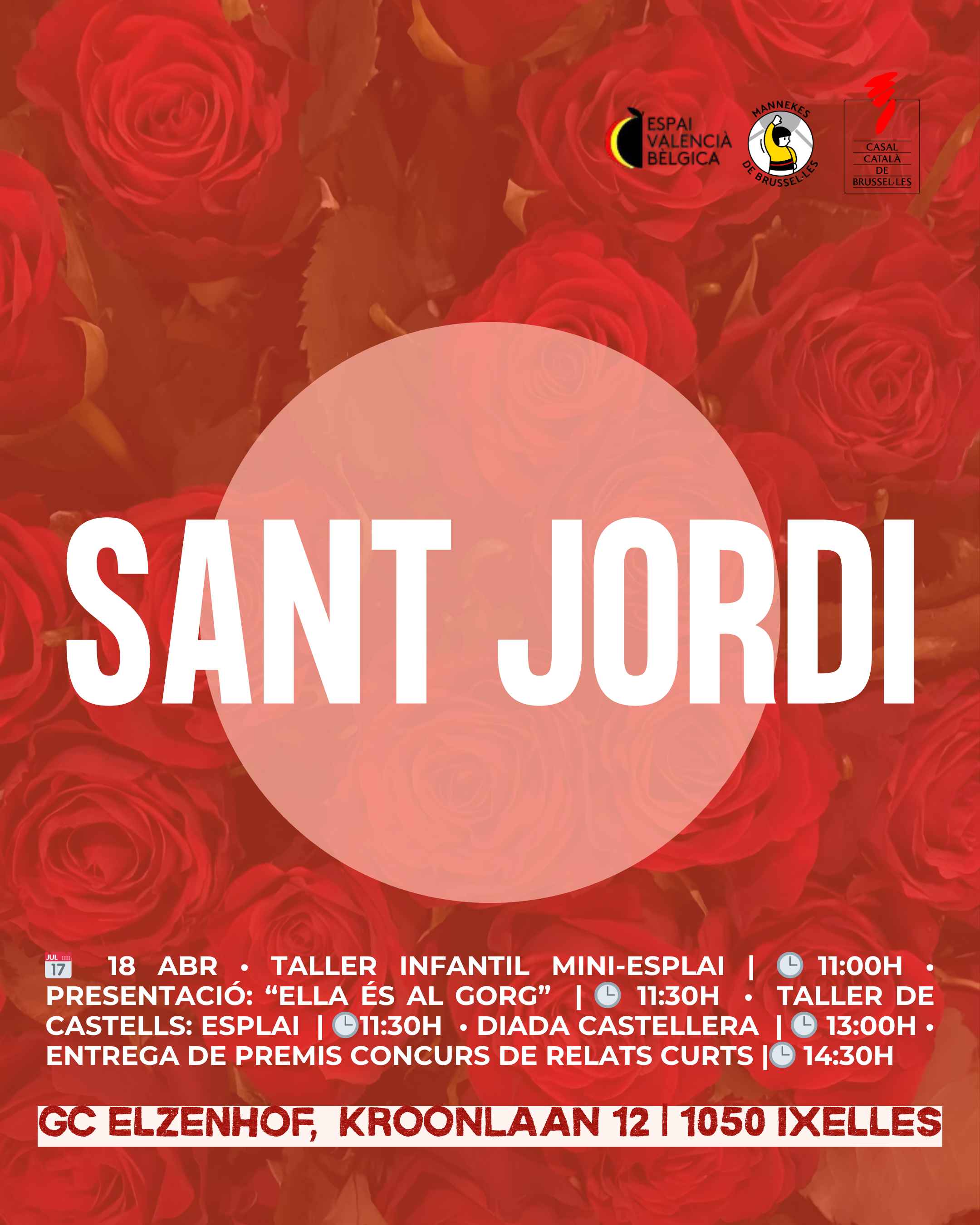 (El pròxim 18 d’abril us convidem a celebrar Sant Jordi a Brussel·les al GC Elzenhof (Kroonlaan/Rue du Trône 12, 1050 Ixelles). Una jornada farcida d’activitats culturals per a tots els públics organitzada pel Casal Català de Brussel·les, en col·laboració amb l’Espai Valencià de Bèlgica.)